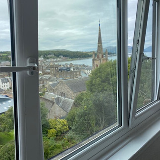 It is an attic flat, and there are quite a few flights of stairs. Yes, that might be off putting for some. BUT the view. Wow!!! It is worth the effort to climb those stairs! You can see the castle, the town, the church steeple and the bay. I was thrilled.