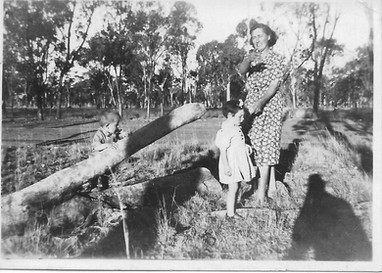 When Mary married George (after 15 years of courtship!), they moved first to nearby Milmerran and then onto a larger property in Bowenville. The photos of Mary with her two children, Marie (my Mum) and Peter, from the time at Milmerran give a glimpse into her life at that time.